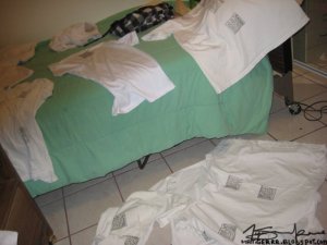 This is how my room looks like. I changed it to my room/office space. It’s where I sleep, blog, dry, package and other business things that I may not be aware of yet. Those shirts on the ground are my practice shirts. Don’t worry. I don’t put the good ones on the ground. I couldn’t. Each one is like my baby.