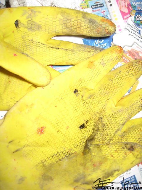 Lucky I wore gloves. I tried doing this last year without them, bad idea. The ink is like oil paint mixed with car oil. Water does no help. If you were to swim in the stuff, then try to wash yourself off, you will end up looking like some swamp monster that scares little girl scouts.