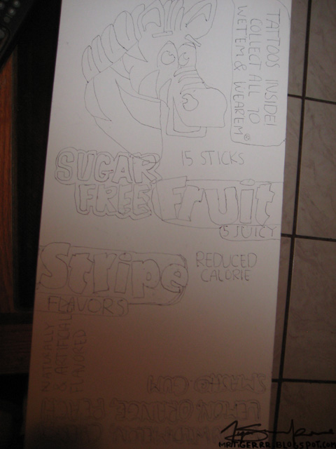 I guess it didn’t though. I wanted to paint this pack of gum. It didn’t turn out so well, but it’s okay. I sparked something else. So I will just draw over this one. I finished painting another one. It should be out tomorrow. Keep an eye out for that. Subject matter is totally different from this, but the style of how this one was going to turn out is pretty much the same. Here is a hint. It has a bunch of bright colors piercing and overlaying each other.