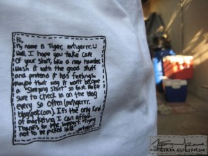 Now fast foward to the shirt, I put this on the lower right side. So now people can check out your butt and say they are reading it as an excuse.