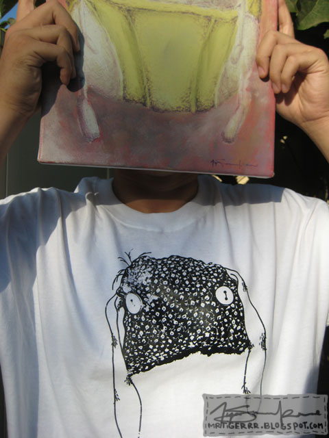 I don’t consider myself good at photography, but I thought I give it a shot. Here’s my cousin Binly helping me out. He wanted to cover his face though, which is fine. He used one of my paintings for the job. Well, it’s his painting now because I sold it to him. Hopefully, it will be worth more and he could sell it when times get rough. I’m hoping that happens to all the people who buy my stuff. My art actually helps someone.